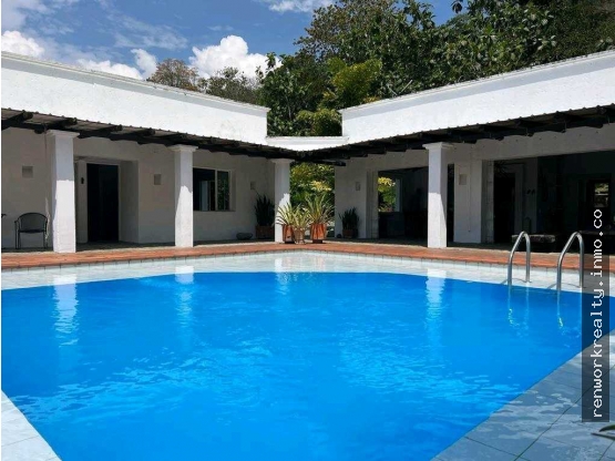 Pesos ColombianosVenta Casa Campestre Altos del Poblado /Calera con linda vista al valle. Son 735m2 en 2.niveles en el 1 nivel encontramos 1 baño social, 1 deposito, La alcoba ppal. Con terraza, 2 vestier, 1 amplio baño con lavamanos doble. 1 sala grande e independiente con ventanales a doble altura, y domotica, 1 patio interior con un bonito jardÃn, 2 fuentes de agua,1 comedor conectado a 1 terraza y jardÃn con sistema de riego 1 jacuzzi y 1 bbq. Cocina moderna abierta con isla, torre de hornos, extractor a techo muy buenos anaqueles , deposito, cuarto de vajillas, zona de lavanderÃa amplia e iluminada, alcoba del servicio con baño. Por.medio de.unas escalas llegamos al 2 nivel donde encontramos 3 alcobas todas con balcón, baño y vestier, 1 estudio o biblioteca. 3 garajes dobles lineales,cuartos útil y de pánico. Ventanas insonorizadas.  Valor venta $8.500.000.000  Valor admon.$1.580.000  Valor.predial $10.000.000 trimestre.Â