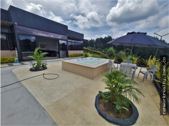 Pesos ColombianosHermosa casa con jacuzzi, construcción vanguardista y moderna, domotizada, con amplios espacios y ubicación estratégica en el Alto de las Palmas, Construcción vanguardista 3.0, el cual se caracteriza por ser amigable con el medio ambiente, donde hay un aprovechamiento optimo de los espacios y de la luz natural, además de contar con un completo sistema de iluminación sistematizado. Ubicada en un lote de 2100 mts, y construidos 432 m2 construido y 450 m2 de terraza y parqueaderos. Esta hermosa casa cuenta con 3 habitaciones cada una con baño y vestier, , sala de cine,  estudio, una hermosa cocina abierta, habitación de servicio, parqueadero para 10 vehÃculos y una agradable terraza con un espectacular jacuzzi, agradables jardÃnes y un sistema de iluminación que hacen de esta casa que digas wow. Adicionalmente es una casa de un nivel, el cual es ideal para todo tipo de familias. Ubicada en unidad cerrada a solo 3 minutos del mall Indiana, uno de los sectores más exclusivos de la ciudad.    NOTA ACLARATORIA: Puede haber diferencias en las áreas suministradas en esta publicación, al momento de la negociación se deben verificar por escrituras públicas debidamente registradas.