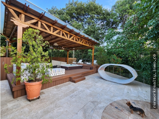 Pesos ColombianosVenta de casa en el Poblado, sector el campestre Esta principal casa se caracteriza por su espectacular terraza deck que cuenta con zona BBQ, jacuzzi, un agradable deck, y una amplia terrazaàrodeada de un encantador entorno verde Cuenta con 369 m2 construidos: - 4 habitaciones + habitación del servicio - 6 baños - 2 salas principales (1 con chimenea de gas) - Comedor - Sala de cine - Mini bar - Sala trasera - Zona descanso trasera (linda con bosque lineal) - Muro llorónà- Deck cubierto, con jacuzzi para 8 personas, sala y chimenea - Turco - Zona de barbecue - Patio trasero (chorros de agua, luces y piso tÃrmico) - Iluminación de zona trasera domotizadaà- Cocina amplia - Cuarto de ropas - Cuartos útilesà- JardÃÂn en zona de adelante - Parqueadero para 4 vehÃÂculos ÃÂ