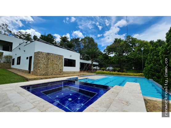 Pesos ColombianosSIN PALABRAS, esta hermosa casa moderna de amplios espacios y agradables ambientes para disfrutar en familia o con amigos, con el mejor clima de MedellÃn, a solo 30 minutos de el Poblado de MedellÃn, en exclusiva unidad cerrada. Por su ubicación, construcción moderna y acogedora, la topografÃa de su lote y su clima, hacen de esta casa un lugar multifuncional: ideal para vivir, descansar, cambiar de ambiente, disfrutar con familiares y amigos, sembrar, hacen de esta casa un lugar ideal para vivir experiencias maravillosas y únicas con tus familiares y amigos. Esta hermosa casa de practicamente 1 nivel, cuenta con 3 Alcobas en el primer nivel, 1 de ellas una principal auxiliar amplia con baño y vista a la piscina, y subiendo solo 5 gradas pequeñas para dar mayor privacidad se encuentra la alcoba principal independiente,  con oficina en el segundo nivel con un balcón amplio donde tendrás una vista espectacular En un lote 10.100 metros,  350 metros construidos con una vista espectacular Esta hermosa casa tiene un encanto adicional y maravilloso y es el amor especial con el cual los dueños han logrado la transformación de esta, en la cual han pensado en un lugar ideal para compartir en familia, con familiares y amigos, y donde se han vivido muchos momentos maravillosos de unión y compartir. Por sus amplios espacios, su ubicación estratégica, su clima, entre otras bondades, han permitido que este sea el punto de encuentro para las reuniones con familiares y amigos, en un espacio lleno de alegrÃa, con variedad de espacios para compartir y disfrutar bien sea de un partido en su amplia sala, de una noche de música en su fonda, una noche de billar, ping pong o cartas en su salón de juegos, o una noche de música en su estar exterior o una tarde de compartir en familia, se han celebrado bodas, bautizos, cumpleaños, etc, un sin fin de momentos llenos de compartir y amor. Fonda bar privada con su video beam y toda la decoración para la ocasión, tiene conexión con la zona de juegos, donde hay juegos de mesa, billar y mesa de ping pong para que disfrutes jugando y compartiendo; esta zona conecta a la cocina con su barra americana e isla con su torre de hornos, desde ahà veras la piscina, la playita, jacuzzi, turco, zona de bbq, solárium, baños para zona húmeda, vestier y zona de ropas independiente; al lado de la cocina esta la sala y zona de tv con su muro llorónAfuera están los lagos y agradables zonas verdes para que disfrutes caminando la finca, una gran variedad de arboles frutales como guayabas, naranjas, mandarinas, limones, mangos, etc, Adicionalmente en un espacio totalmente independiente se encuentra la casa de mayordomo con 3 alcobas Tanque de agua para alguna emergencia, pero tienes agua de EPM y agua veredal, que garantizan que siempre contaras con alternativas para el uso del agua. Esta hermosa casa finca con multiples usos con el mejor clima de medellÃn, a solo 30 minutos del poblado espera por ti y por tu familia para que vivas momentos maravillosos con tu familia, familiares y amigos. NOTA ACLARATORIA: Puede haber diferencias en las áreas suministradas en esta publicación, al momento de la negociación se deben verificar por escrituras públicas debidamente registradas...